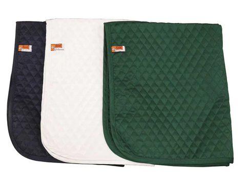 These Baby Saddle Pads are designed to be your everyday saddle pad. They can go under your fleece saddle pad to keep the fleece pad perfectly clean and ready for a horse show. The Baby Saddle Pad is moisture-wicking, lightweight and easy to throw in the washer. Buy several and you will always have a clean saddle pad to use! Designed to fit Hunter Jumper and All Purpose English Saddles for horse and ponies.