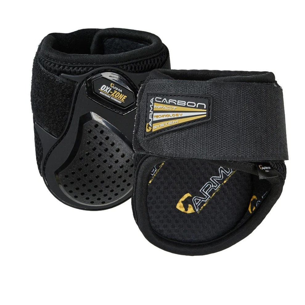 Performance level ARMA OXI-ZONE fetlock boots offer next-generation protection with excellent temperature regulating features. 360° VENTILATION: Directional venting of the outer shell and open structure fabrics keep air circulating all around the leg to dissipate heat and reduce moisture levels. 4D IMPACT PROTECTION: FlexFit TPU moulded outer with directional venting for protected areas. Air Motion 3D mesh encourages airflow. Zonal EVA foam buffers impacts to the most vulnerable areas. Shock absorbing TPG perforated foam* inner with waffle weave wicking lining lighter than neoprene and low water absorption, remaining protective even when warm. PIERCE PROOF: Fine metal mesh lined ventilation channels prevent penetration of debris. Further detail: smooth tough outer to deflect blows, recessed stitching, elasticated straps with adjustable pin fastening for a secure quick fit. Set of 2. *Reach standard - GRS certified recycled. Cert CU1134936GRS-2022-00020462.