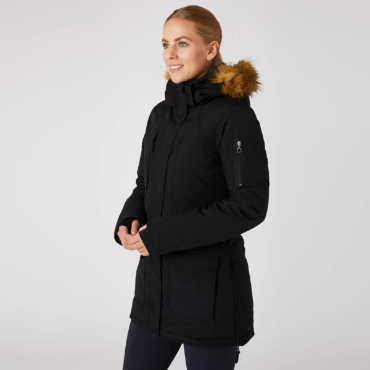 Choose this sporty, long women’s parka for plenty of warmth with function and durability. The jacket is warm, water repellent and windproof for any type of winter weather. The 2-way zipper and zipper side openings are just a few of the many details. Plenty of pockets and a hood with stunning fur trim make this a remarkable coat. The longer cuffs make it easy to pull them over your hands while you ride for added warmth. Full-dull, PU coating 3000/3000mm/mvp.