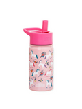 Wildkin's stainless steel water bottle combines an eye-catching design that kids will love and parent-approved features. This water bottle’s just-right, cupholder compatible size makes it perfect for keeping your child hydrated for daycare, elementary school or travel. Leakproof when closed and spillproof when open, lightweight and easy to carry, your little one will find it easy to tote around. You'll love the BPA and phthalate free materials and designs that easily coordinate with Wildkin backpacks and lunchboxes. BPA & Phthalate free Double wall stainless steel Vacuum insulated Leakproof when closed, spillproof when open 14 oz size fits most cupholders Lightweight and durable Comfortable carry handle Two silicone straws included Coordinates with other Wildkin gear Dishwasher safe top rack. Hand wash recommended for bottom bottle portion to prolong the life of the print.